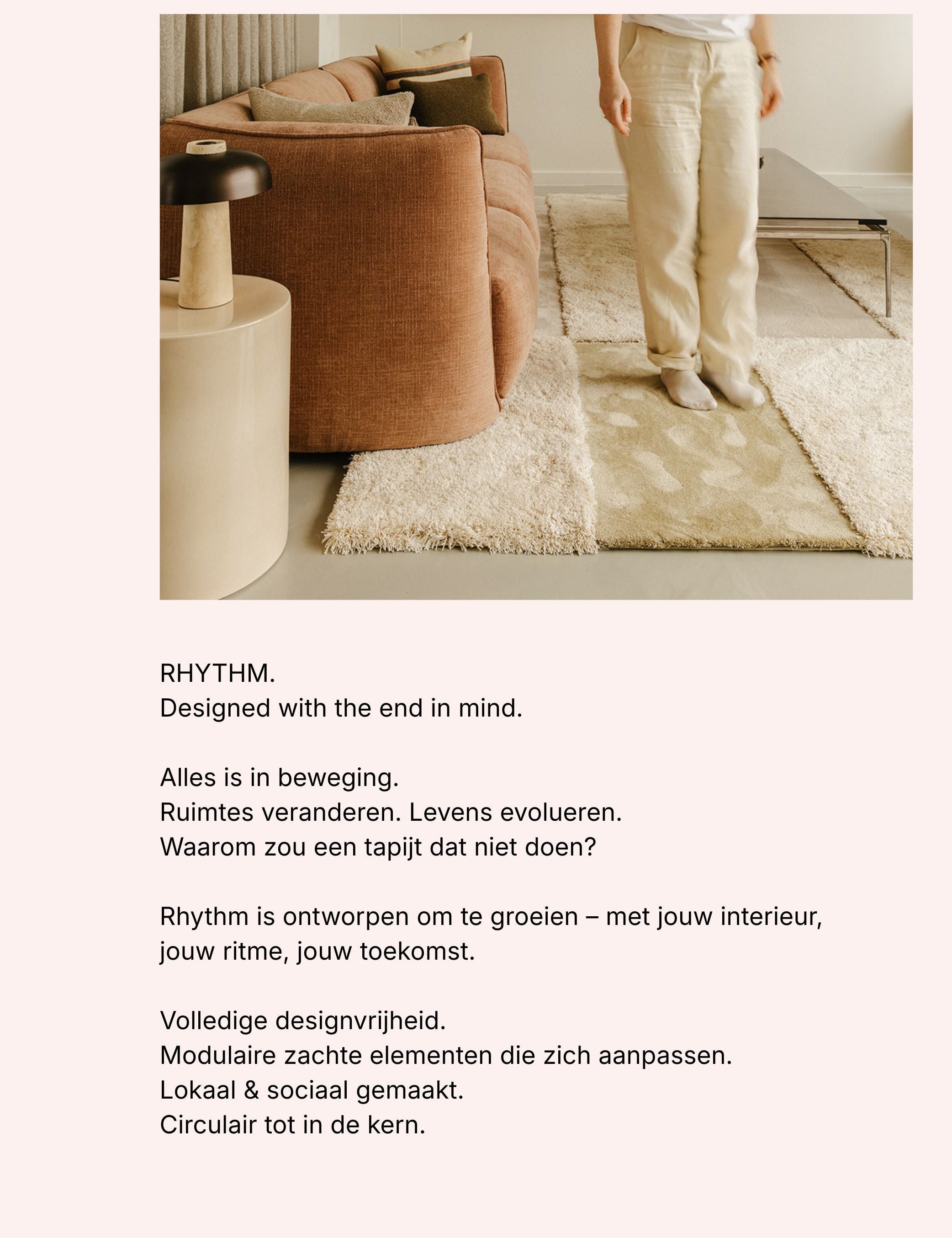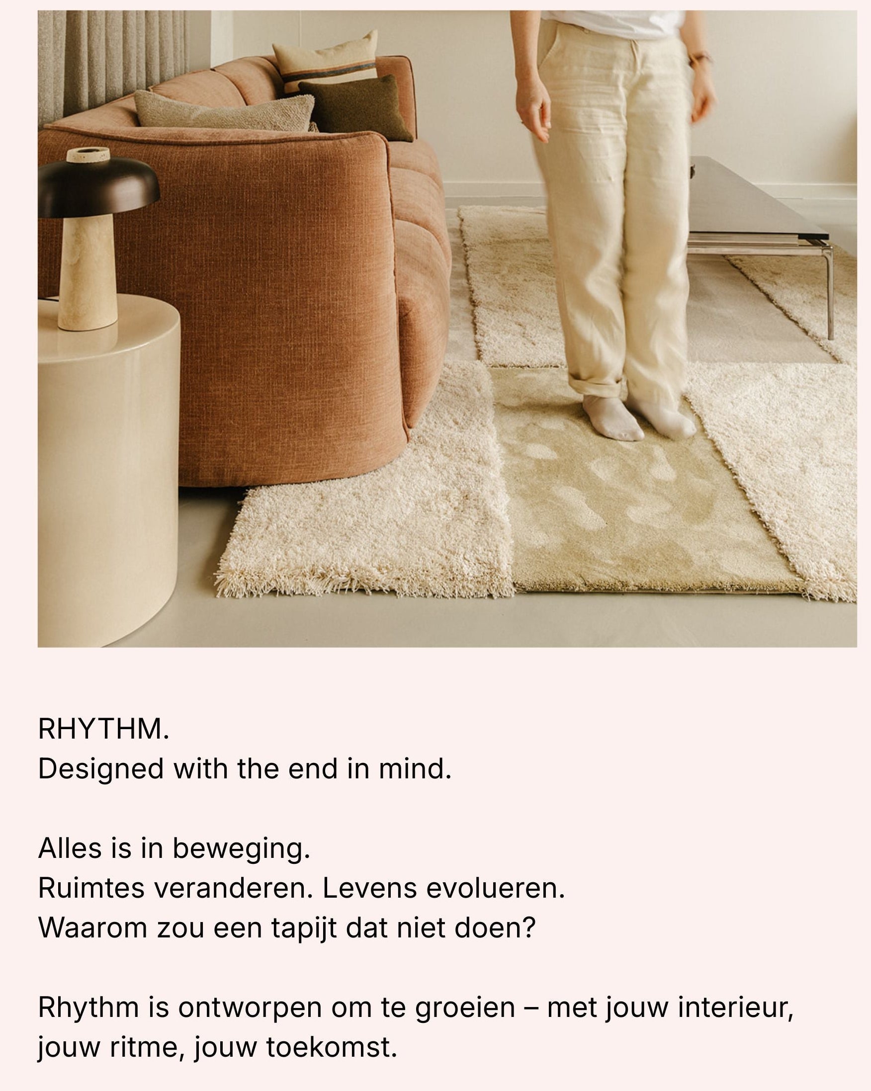 "Bij ons draait het om thuiskomen en helemaal jezelf kunnen zijn in je eigen knusse en veilige cocon. Tegelijkertijd streven we ernaar dat ons unieke en duurzame tapijt nooit meer afval wordt. "